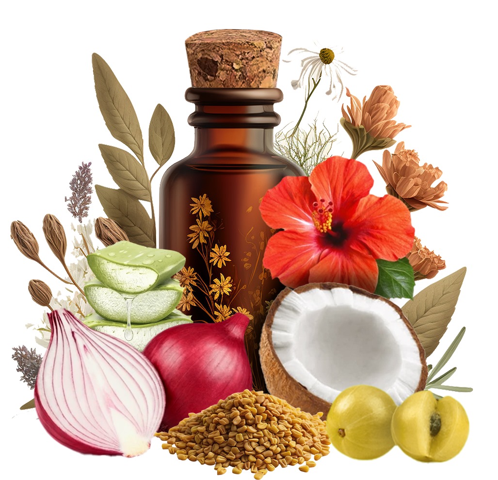 Herbal Hair Oil: Made with all-natural ingredients and helps to reduce hair fall problems and promote hair growth, strengthen strands, and add shine.